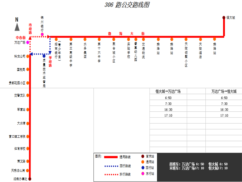 恒大城:6:50、7:30/16:30、17:10。